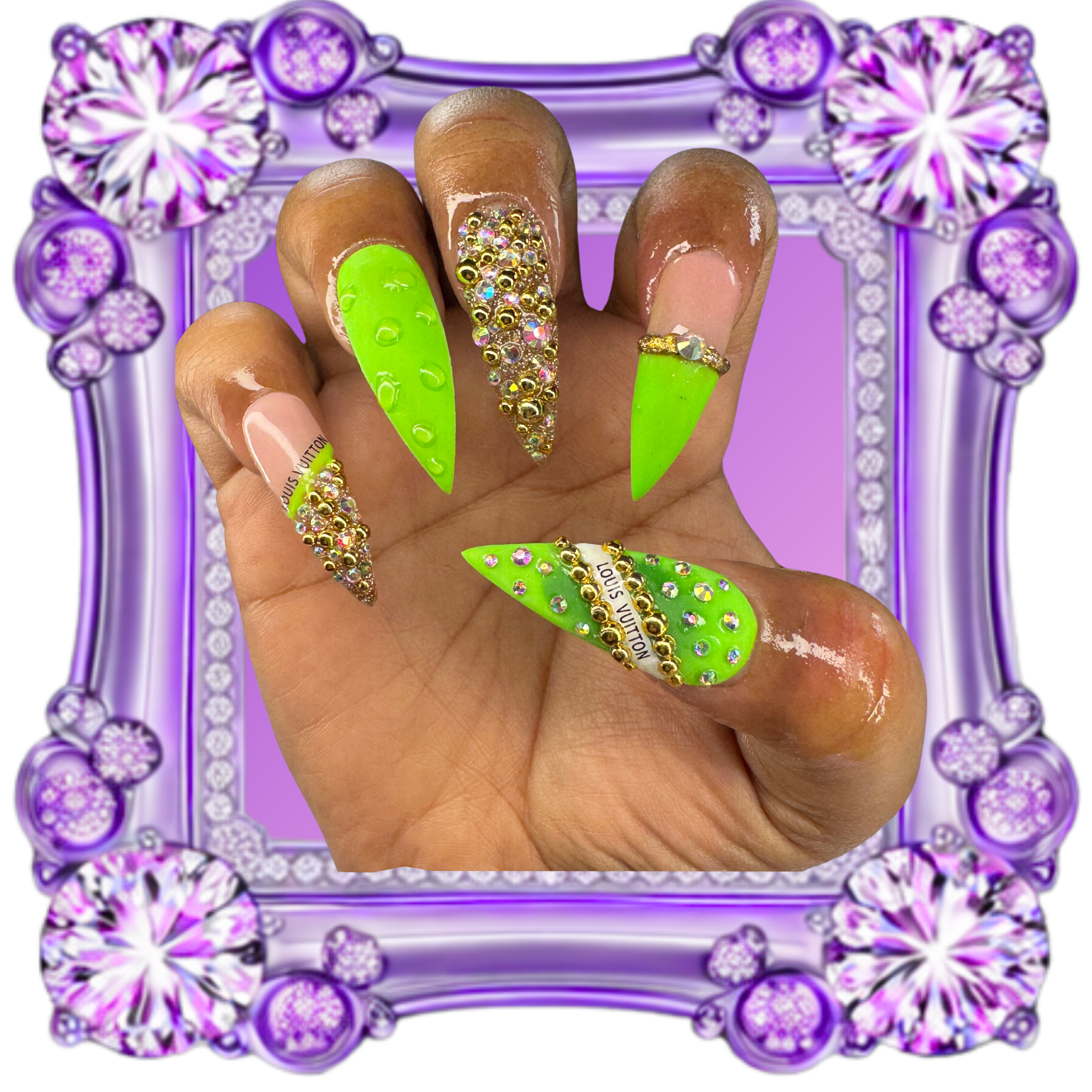All of our press-on nails are custom handmade, which means each set is unique and may feature slight variations in color, design, and charm placement.